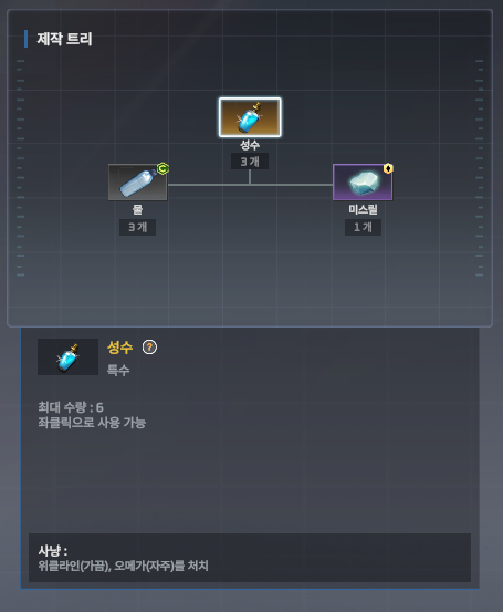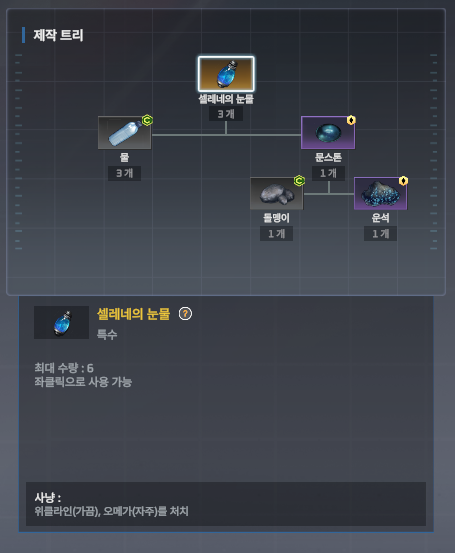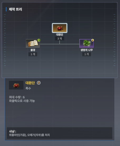 대환단, 성수, 셀레네의 눈물은 각각 생명의 나무, 미스릴, 운석으로 만들 수 있습니다.